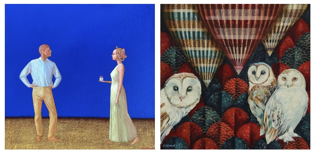 Magdalena Gedroyć: Kwieciuszek (30 cm x 30 cm), Czapka niewidka (30 cm x 30 cm)
